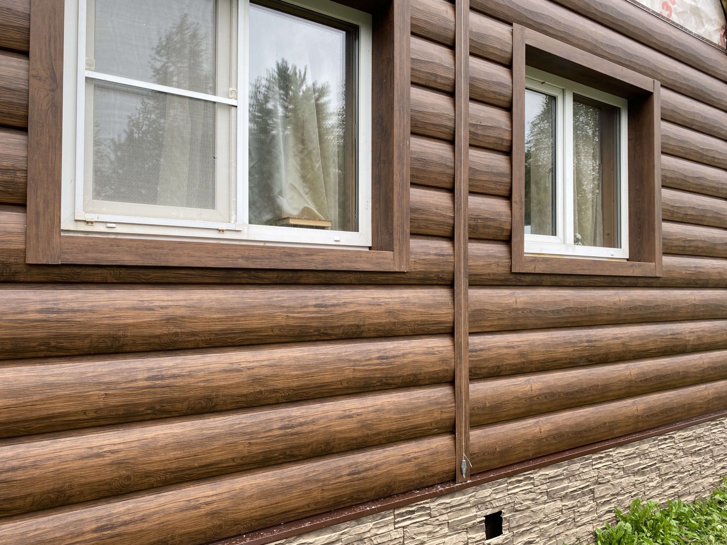ЦАРЬСАЙДИНГ: металлический сайдинг Блок-Хаус 4Д одноволновый венец под рубленое бревно c тиснением короед! Фасад дома из металлосайдинга Бревно Рубленое 4Д внешне на 100% идентичен натуральному деревянному рубленому срубу, но при этом легче, крепче, дешевле и долговечнее!