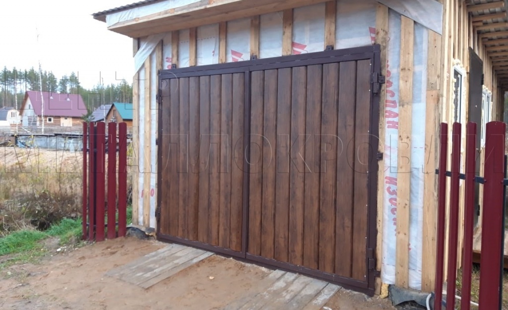 Ворота для гаража из металлосайдинга могут быть как распашными, так и откатными, и даже с автоматизированным приводом. Всё зависит от ваших предпочтений, это касается также ширины и высоты конструкции.