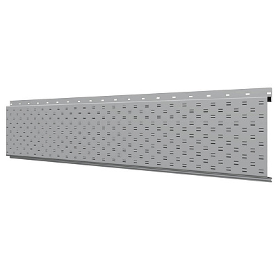 Линеарная потолочно-стеновая панель с ПЕРФОРАЦИЕЙ для вентиляции цвет RAL7004 Серый применяется в качестве софитов для подшивы крыши, наружной и внутренней отделки потолков, стен, фронтонов фасада дома в Набережных Челнах.