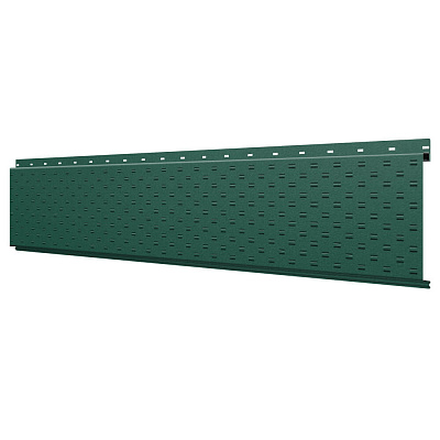 Линеарная потолочно-стеновая панель с ПЕРФОРАЦИЕЙ для вентиляции цвет RAL6005 Зеленый Мох Стальной Бархат применяется в качестве софитов для подшивы крыши, наружной и внутренней отделки потолков, стен, фронтонов фасада дома в Набережных Челнах.