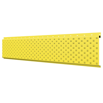 Линеарная потолочно-стеновая панель с ПЕРФОРАЦИЕЙ для вентиляции цвет RAL1018 Желтый применяется в качестве софитов для подшивы крыши, наружной и внутренней отделки потолков, стен, фронтонов фасада дома в Набережных Челнах.